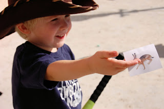Next we went on a hunt for game.  Each child took an imaginary bow or musket outside for the hunt.  Turkeys, deer and rabbits were found and brought in!