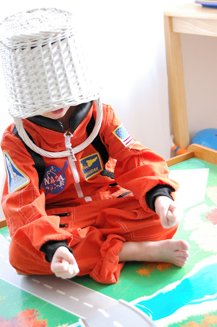 He had a wonderful birthday and is enjoying playing with all of his new treasures. Oma and Opa have encouraged his love of outer-space. His new spacesuit has inspired a whole new round of imaginative play. I love his newest version of a space helmet…